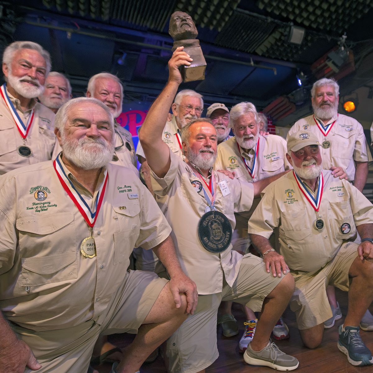 米・フロリダ州のヘミングウェイが居を構えたキーウェストで行われたヘミングウェイそっくりさんコンテストに集まった124名の中で、弁護士で創作もするジョン・オービル氏が優勝