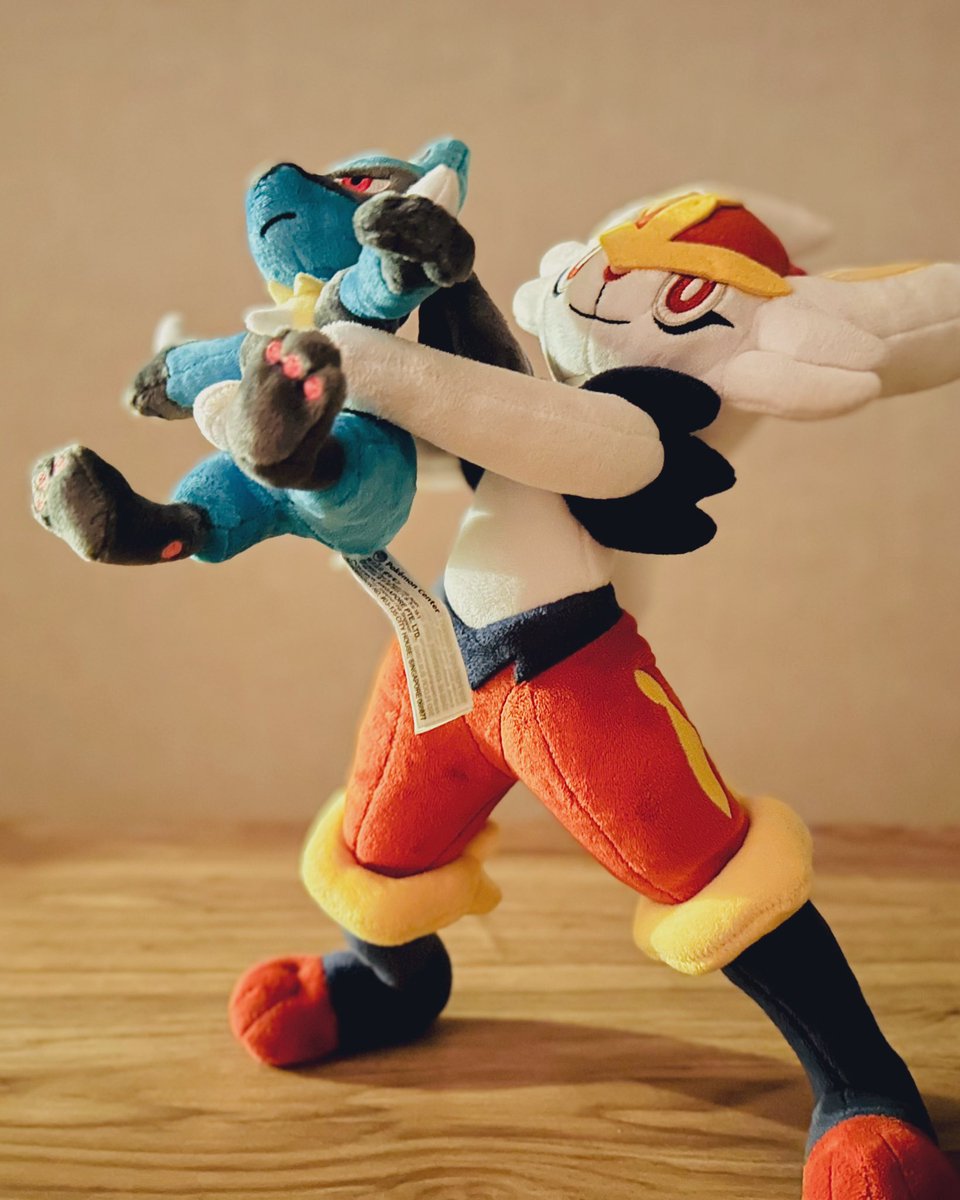 조그마한 루카리오를 안고 있는 에이스번✨ 원래 인형 세탁이 완료되면 이런식으로 사진을 찍으려고 했어요! 하지만 인형 건조가 생각보다 오래 걸리네요.