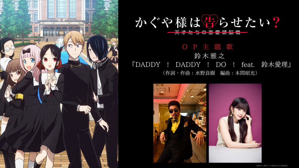 「#かぐや様」第2期OP主題歌「DADDY ! DADDY ! DO ! feat. 鈴木愛理」は、2020年4月15日(水)発売です💕