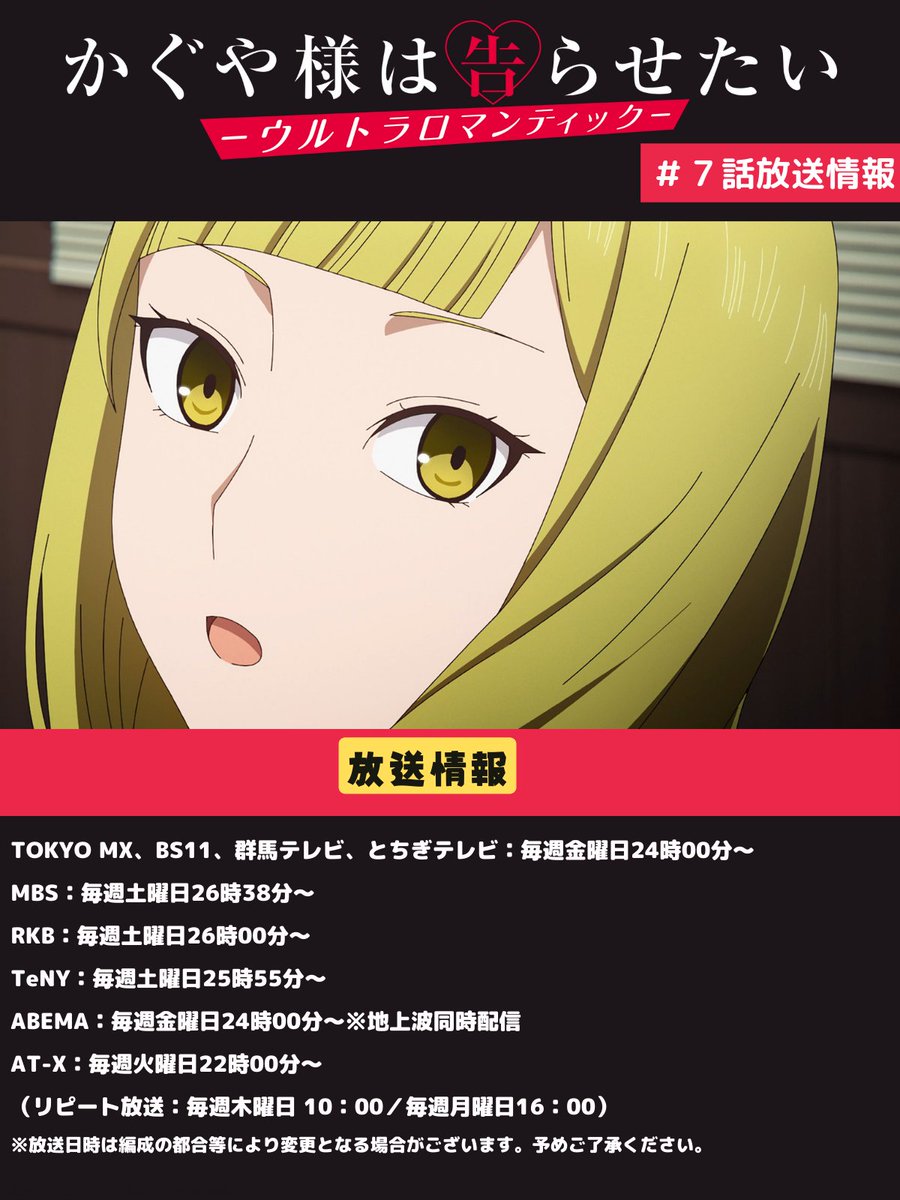 #かぐや様 第7話は本日24時より順次放送開始💕