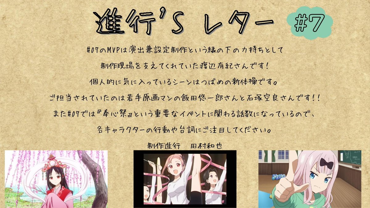 #07 のMVPは演出兼設定制作という縁の下の力持ちとして制作現場を支えてくれていた渡辺有紀さんです!