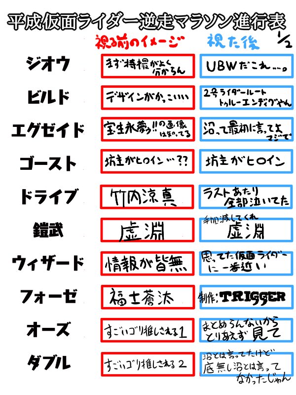 というわけで578日、1年7ヶ月の平成仮面ライダー逆走マラソンここに完結です!!!お付き合い頂いた皆様本当に有難うございました!!! #平成仮面ライダー逆走マラソン