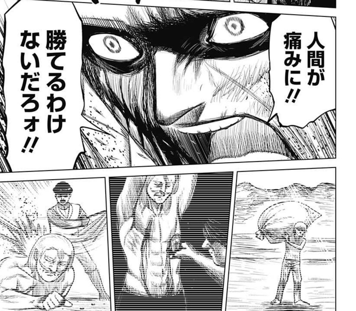 ハイパーインフレーション、ギャグの流れで出てた「人間が痛みに勝てるわけないだろ」をカッコ良さの演出に昇華させるの、普通に上手すぎて笑ってしまった