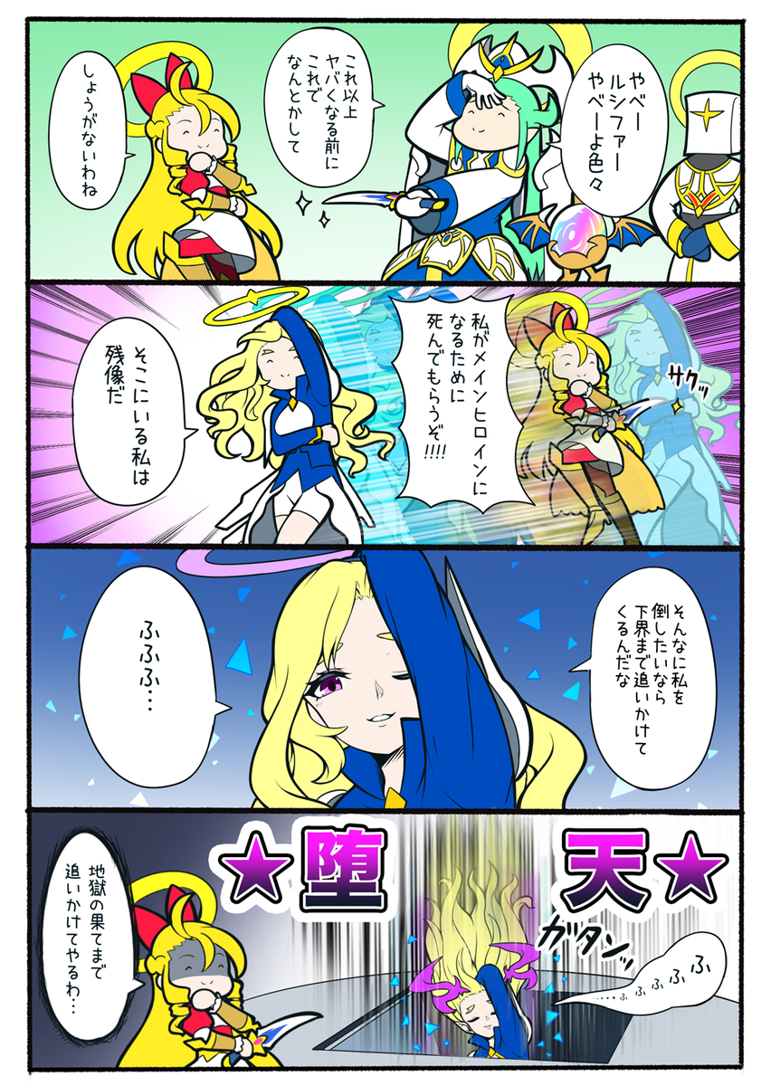 ルシファーは獣神化するなら、天界に還って光の力を取り戻した姿と、堕天の道を進んだ姿で分岐したらいいよね