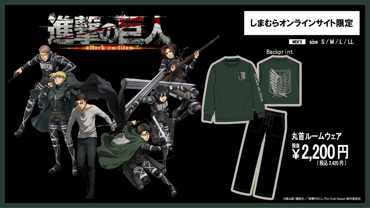 しまむらオンラインサイトに、TVアニメ『進撃の巨人』のルームウェアが登場!