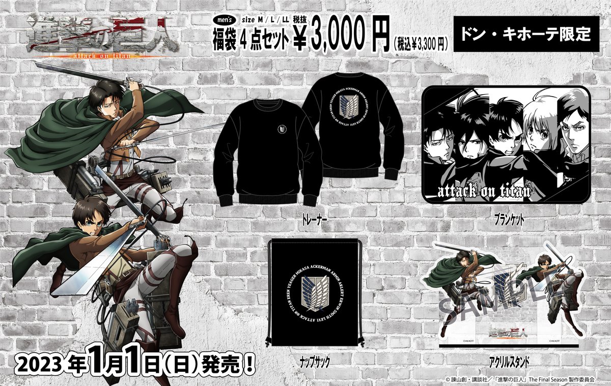 全国のドン・キホーテにTVアニメ『進撃の巨人』のアパレル福袋4点セットが登場!