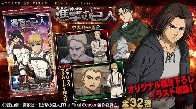 「エレン、ミカサ、アルミン、リヴァイ」のオリジナル描き下ろしカードを含む全32種がラインナップ!