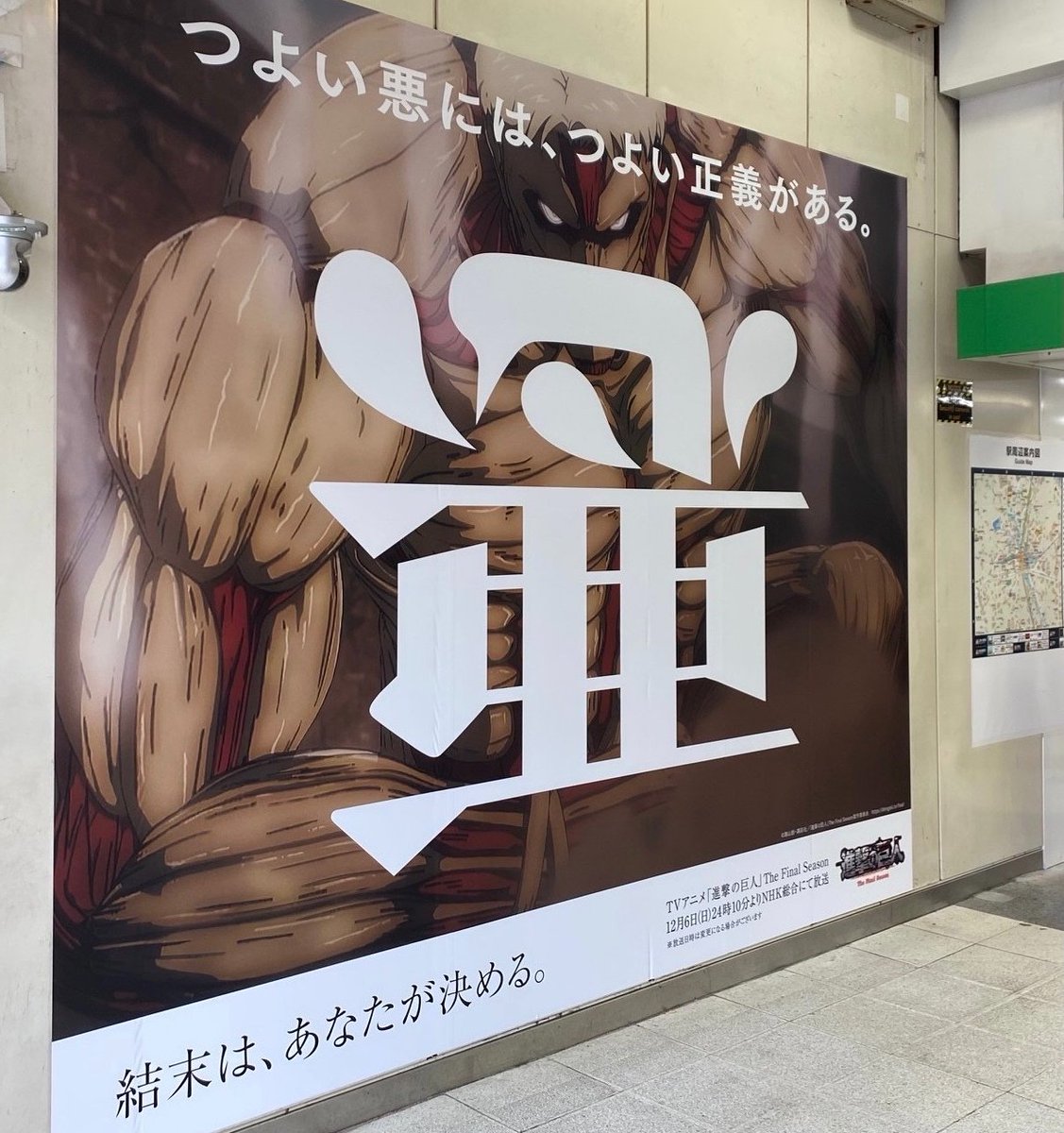 JR渋谷駅にて、「進撃の巨人」The Final Seasonのビジュアルを掲出中!