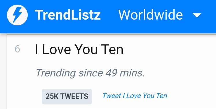 Keyword "I Love You TEN" is trending No.7 on Worldwide Twitter Trends 🌎