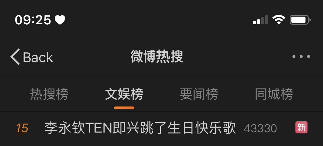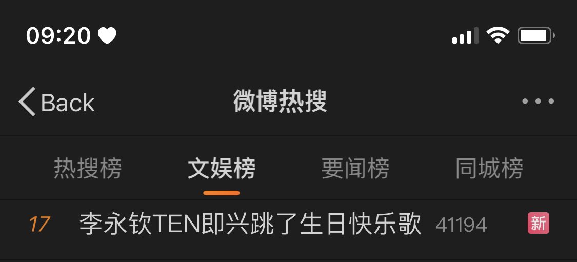 แท็ก #李永钦TEN即兴跳了生日快乐歌 (หลีหย่งชินเตนล์เต้นฟรีสไตล์เพลงวันเกิด) ติดฮอตเสิร์จ weibo หมวดบันเทิงอันดับที่ 15 และวิดีโอของเตนล์ติดอันดับที่ 23 ค่ะ!!