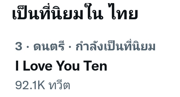 คีย์เวิร์ด "I Love You TEN" ยังคงติดติดเทรนด์ไทยอย่างต่อเนื่องอันดับที่ 3 ค่ะ