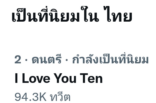 Keyword "I Love You TEN" is trending No.2 on Thailand Twitter Trends