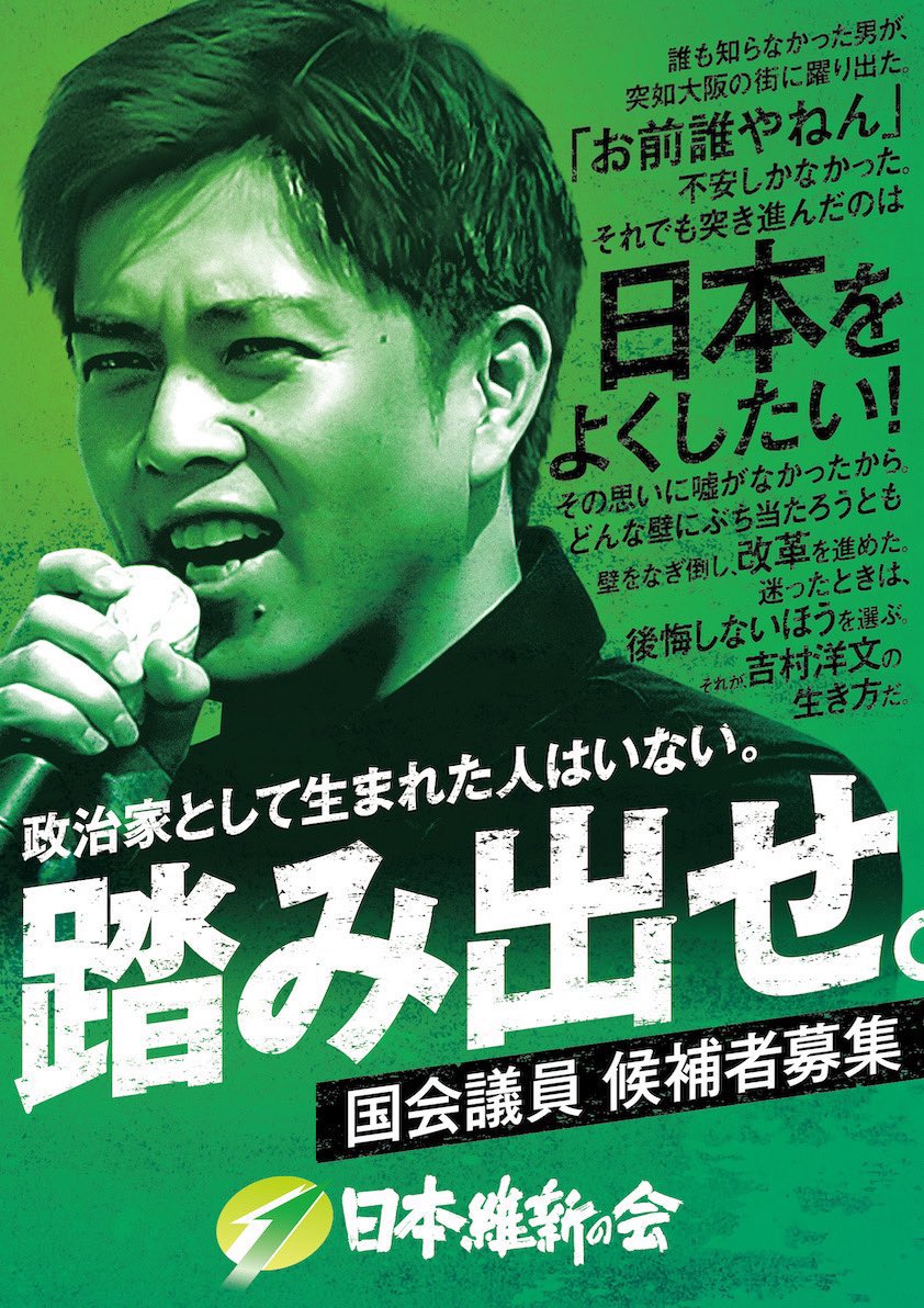 来る解散総選挙に向けて、候補者を大々的に募集いたします。維新の政策に共感し、改革精神のある方にたくさんお会いできますように!