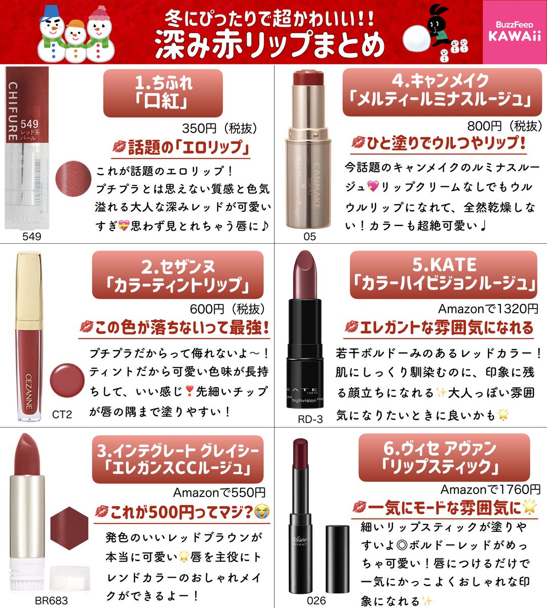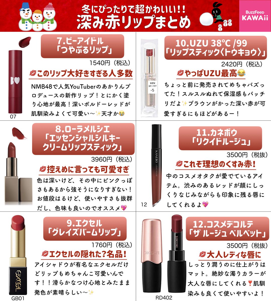 今年の冬リップは君に決めたー!!⛄️コスメオタクが指名買いする「深み赤リップ」をまとめたよ💄