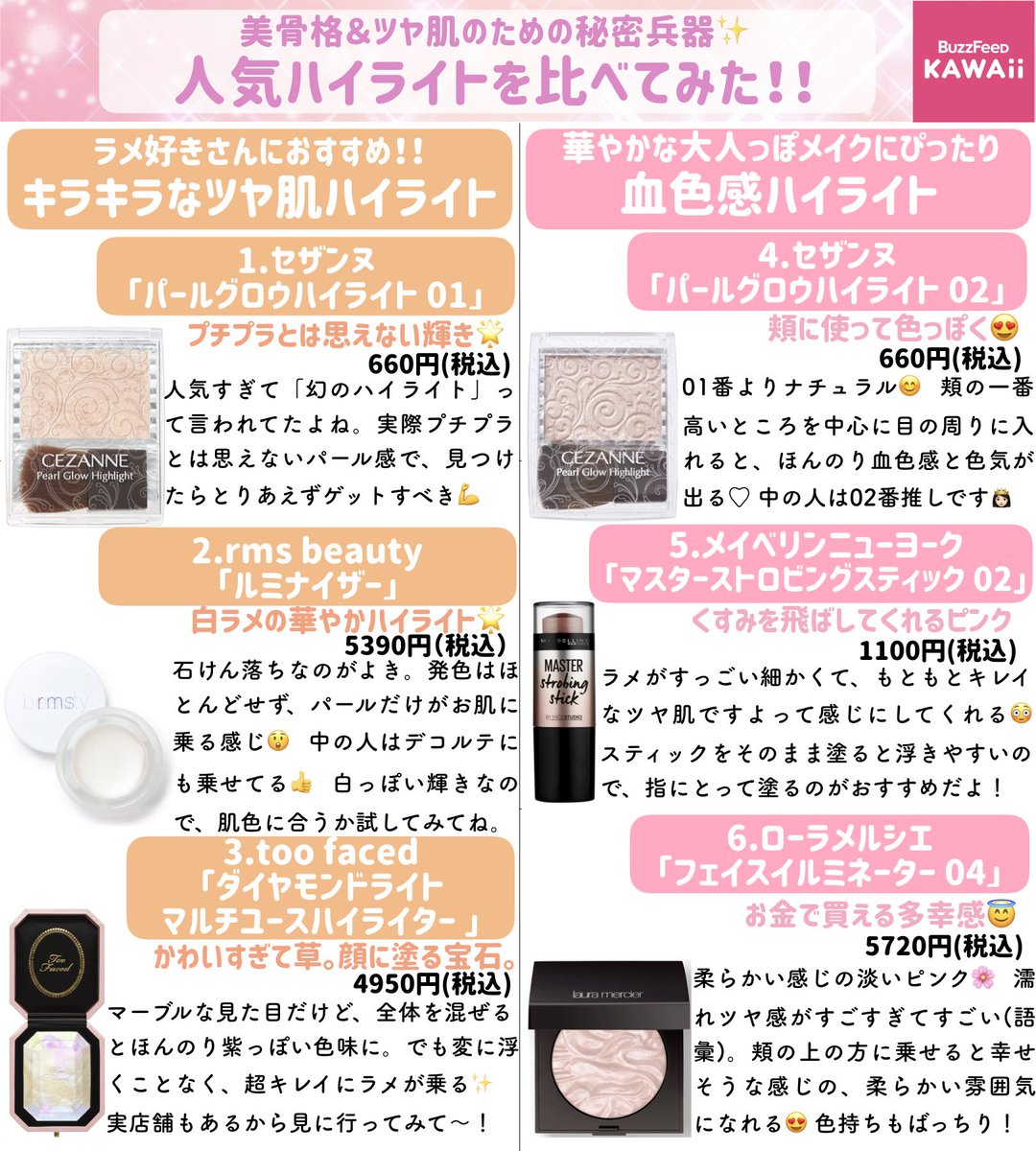ツヤ肌&小顔メイクの必須アイテム、ハイライト。基本的な入れ方と、どれを買えばいいかわからない…という方向けに「なりたい肌別のおすすめハイライト」をまとめました✨