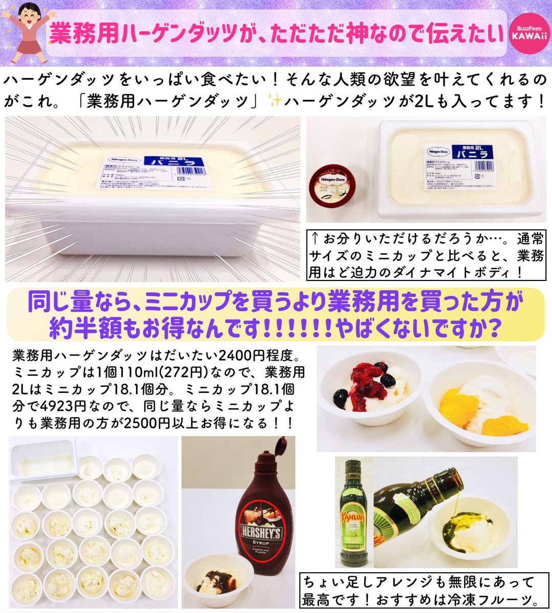 ハーゲンダッツの業務用が神すぎたので魅力をまとめました!通常のミニカップを買うよりも半額以上お得なんです🙌🏻 価格や口コミのチェックはこちら→