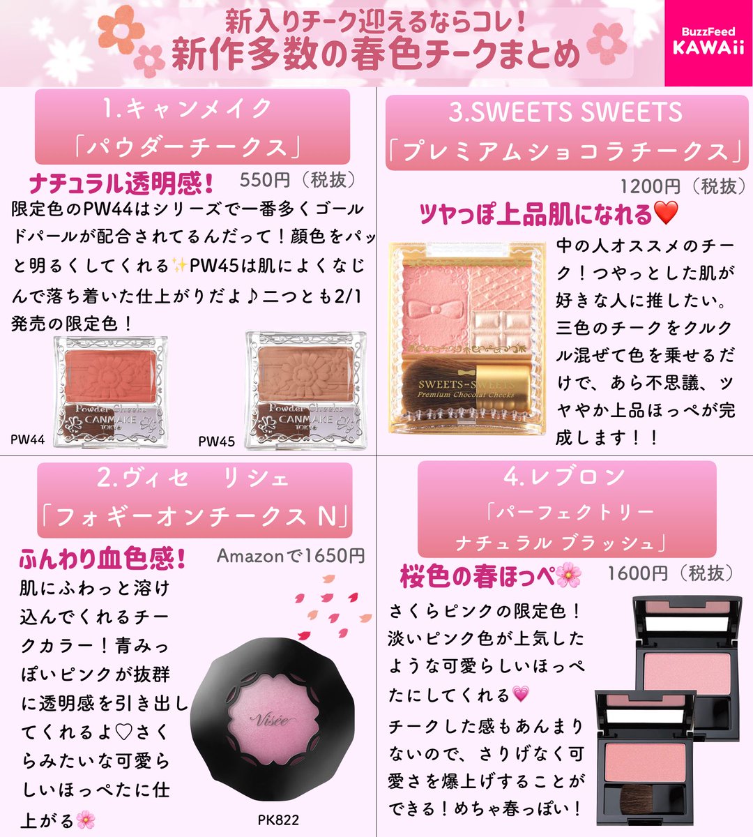 春っぽチークを新しくお迎えするならこれ!新作多数の春色チークをまとめました🌸