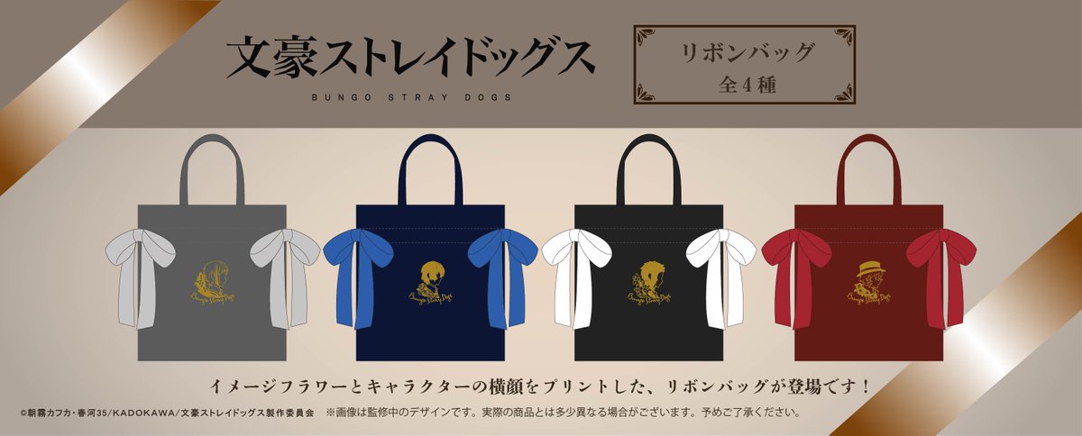 【文豪ストレイドッグス】より、キャラクターのイメージフラワーとキャラクター横顔をプリントした、リボンバッグが登場です!