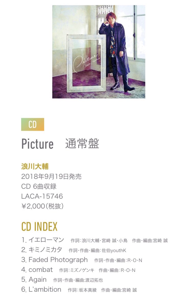 浪川大輔さん6th mini album 「Picture」に収録されております