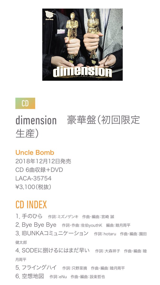 Uncle Bombさん 4thミニアルバム「dimension」