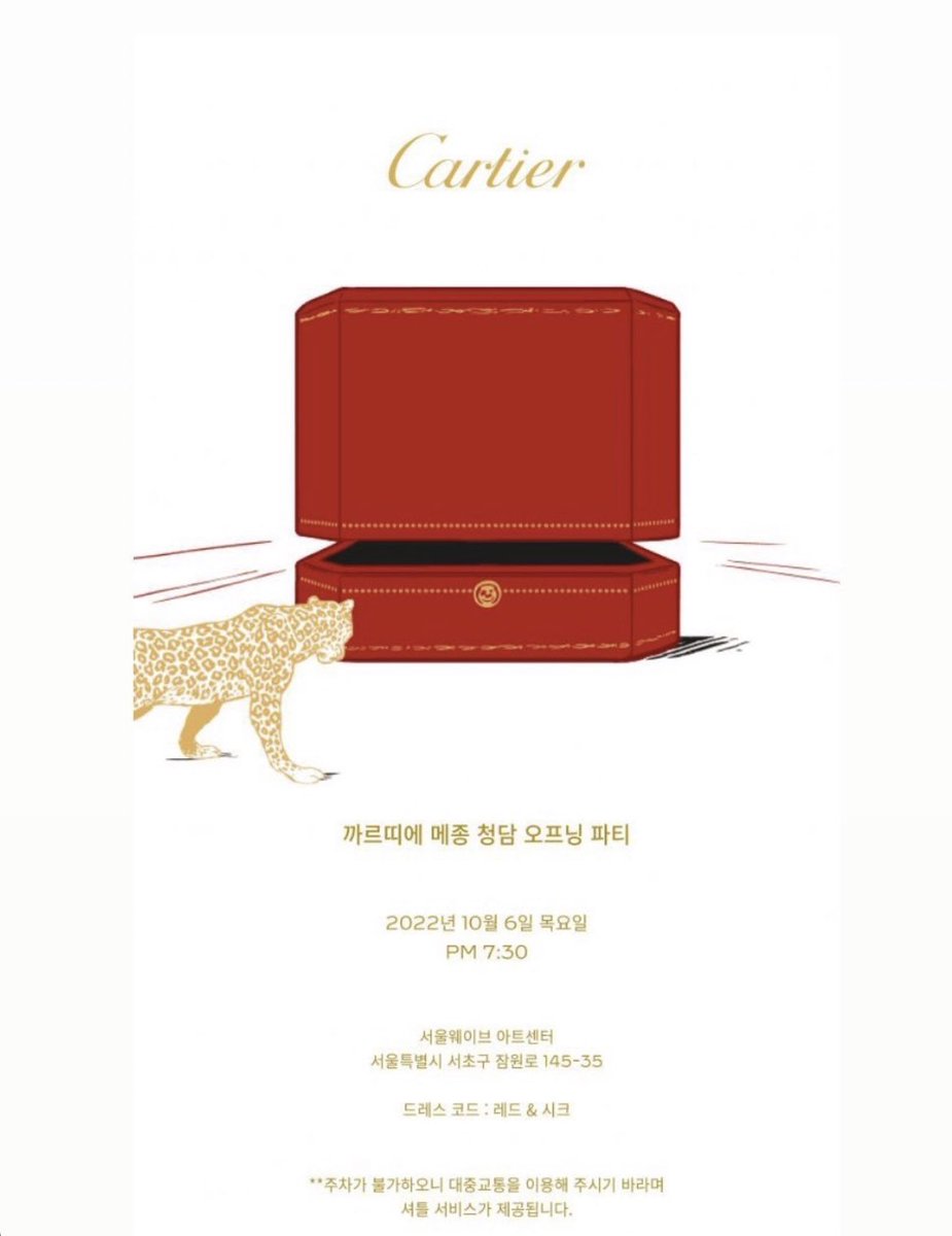 The video of #JISOO attending #Cartier Maison Cheongdam opening party will be broadcast through Naver Now Live on Oct 15th and Cartier KakaoTalk Channel & Kakao TV app on Oct 16th.