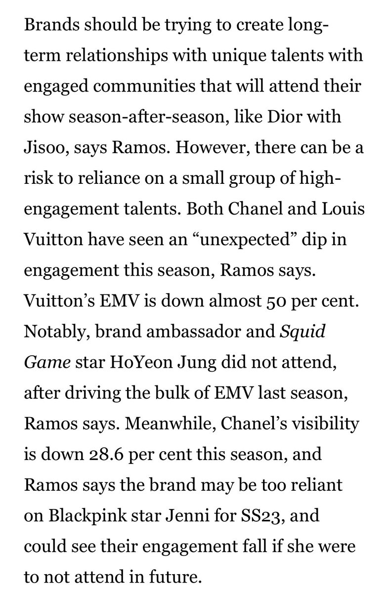 #JISOO Dominated PFW! @Dior became top performing brand in PFW SS23 of 34.9M in MIV. According to @Launchmetrics Jisoo garnered the brand 3M in MIV & another 1.5M for the whole week.