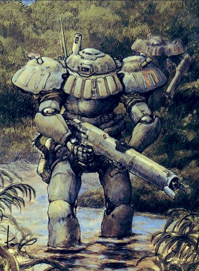 小林・近藤版のジ・Oの体型を参考に、タミヤの六輪装甲車を胴体に使ってミリタリー要素を加えてます。