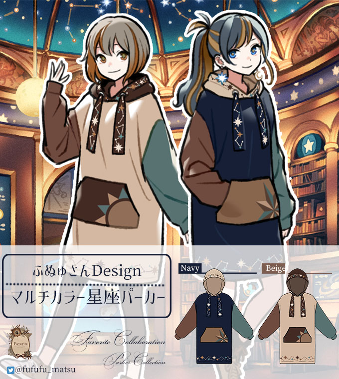 落ち着いた色味の、星座モチーフのパーカーをデザインしました🌟