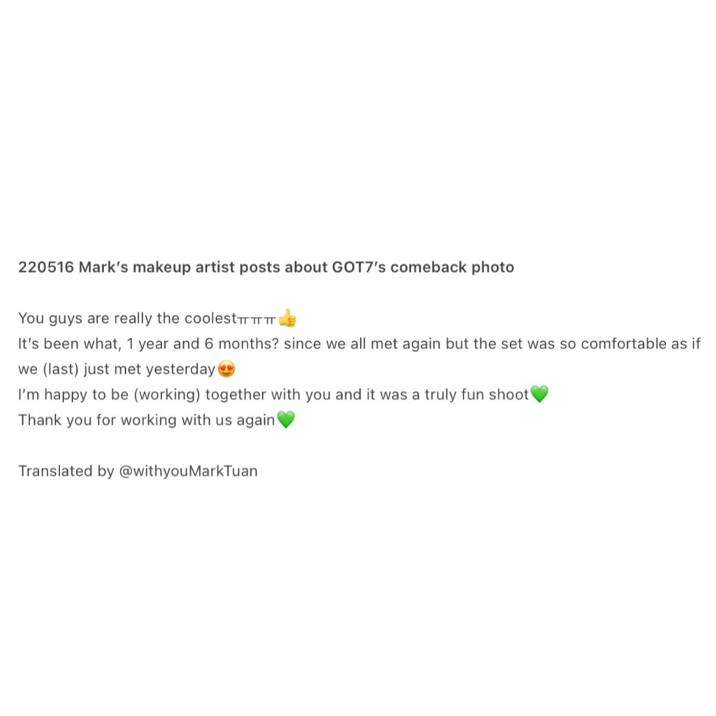 220516 Mark’s makeup artist posts about GOT7’s comeback photo