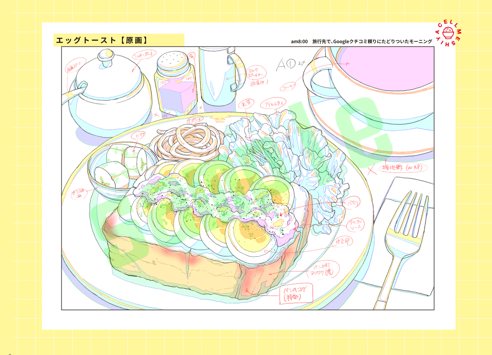 そこに掲載予定の、冷やし中華の原画作業、タイムラプスを上げてみます。